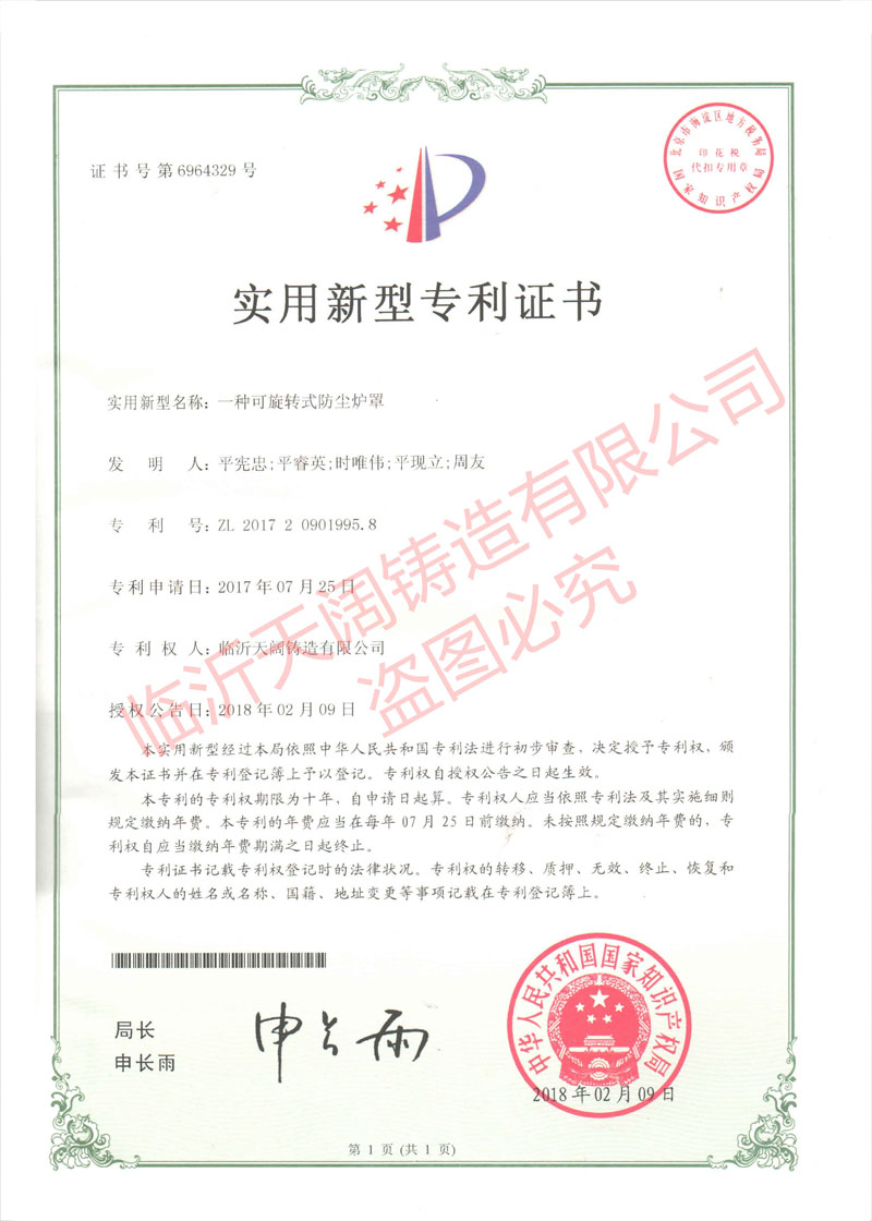 ★一种可旋转式防尘炉罩 (证书号 第6964329号)